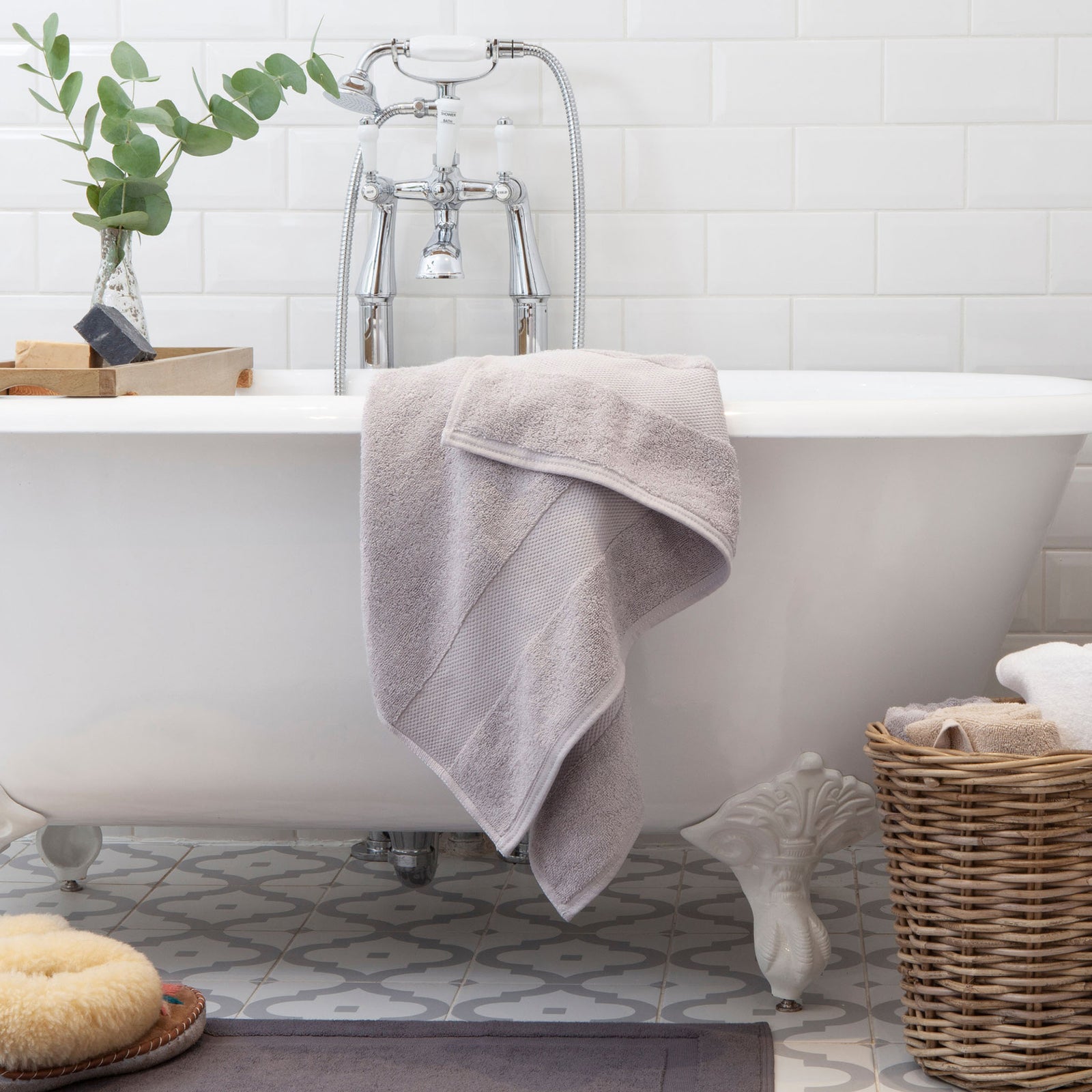 Wrap yourself up in our essential, soft, light grey bath towel—made from the finest quality organic cotton.