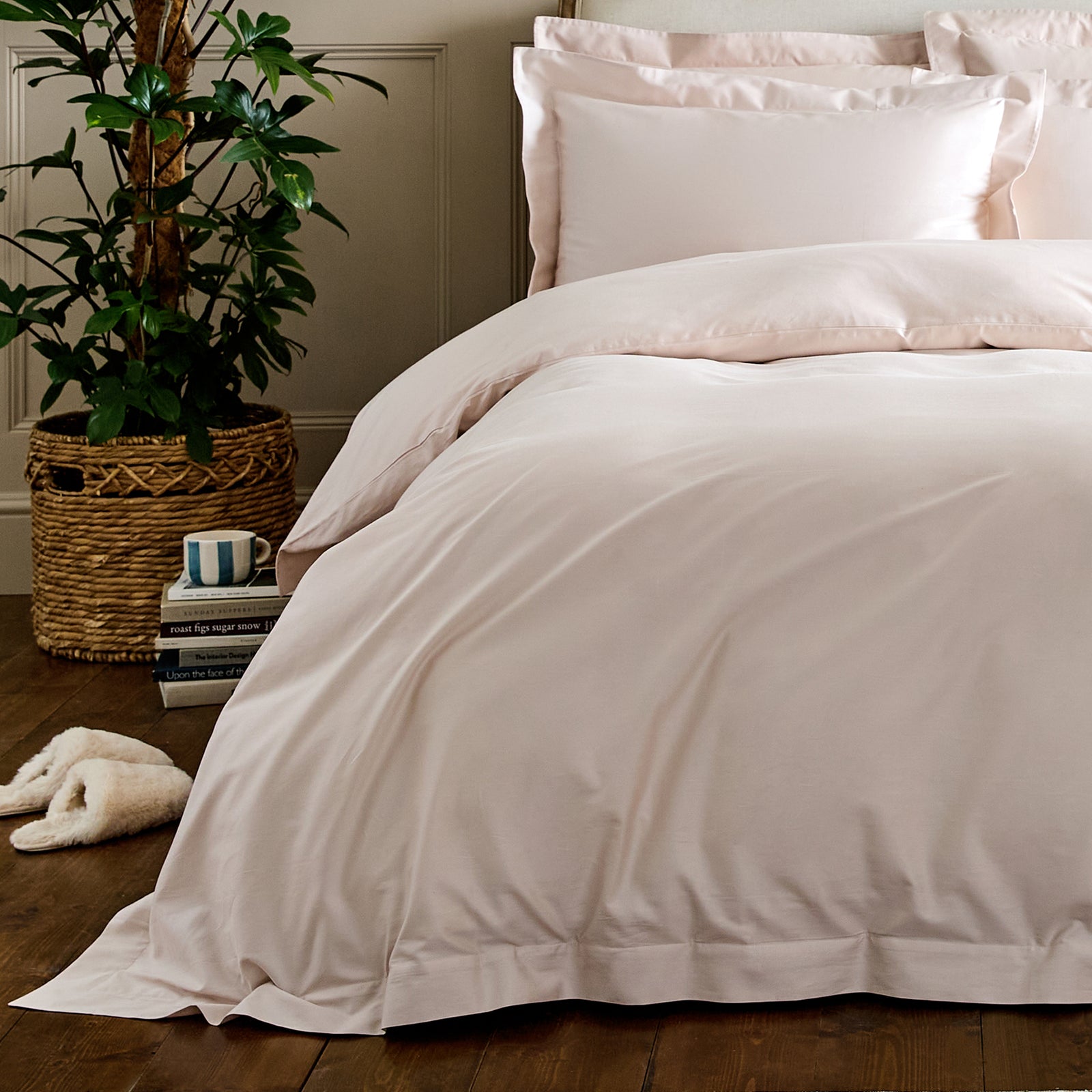 Tuck into this edged duvet cover in a barely-there, delicate pink shade that’s oh so easy to use—slow-made from luxury organic cotton.