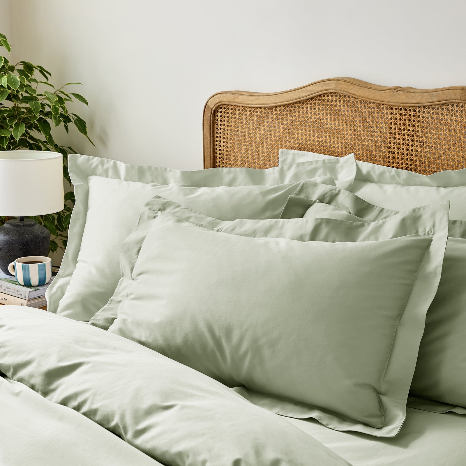 Rest your head on these balanced sage green edged pillowcases, equal parts fresh & warm—slow-made from luxury organic cotton.
