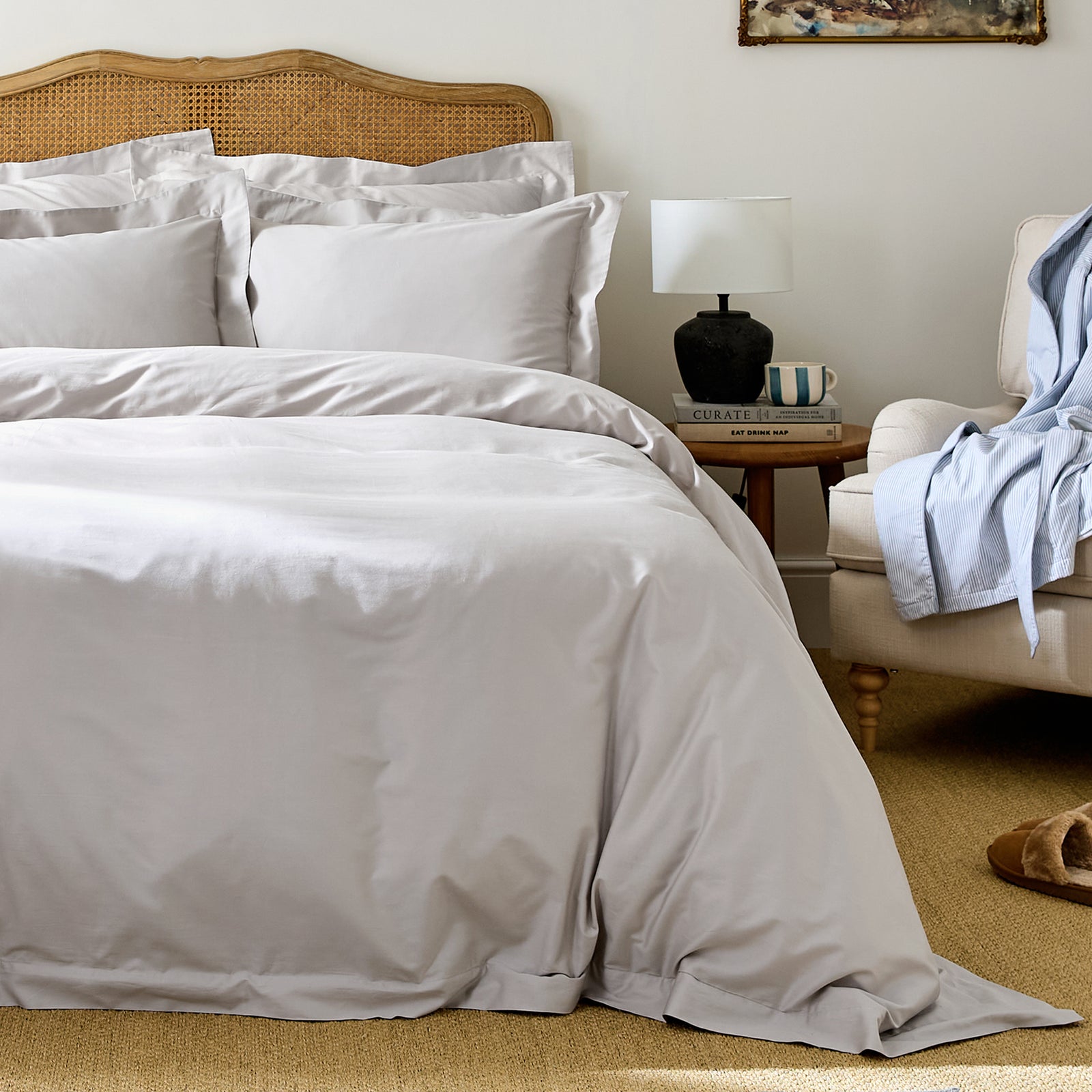 Look forward to your deepest slumbers with this grey bedding set. A warm grey with a subtle sleep-friendly lavender undertone—slow-made from luxury organic cotton.