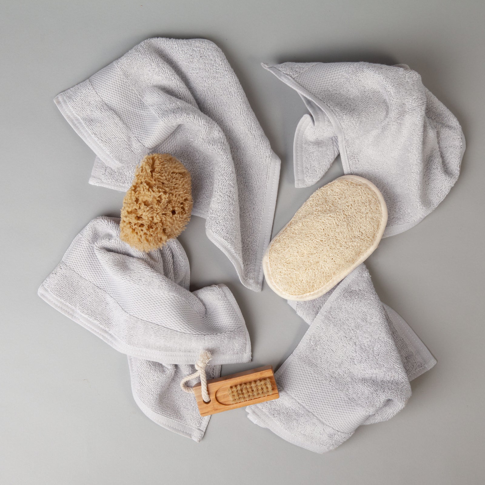 Allow your precious face skin the gentle touch it needs, with soft, light grey face towels—slow-made from luxury organic cotton.
