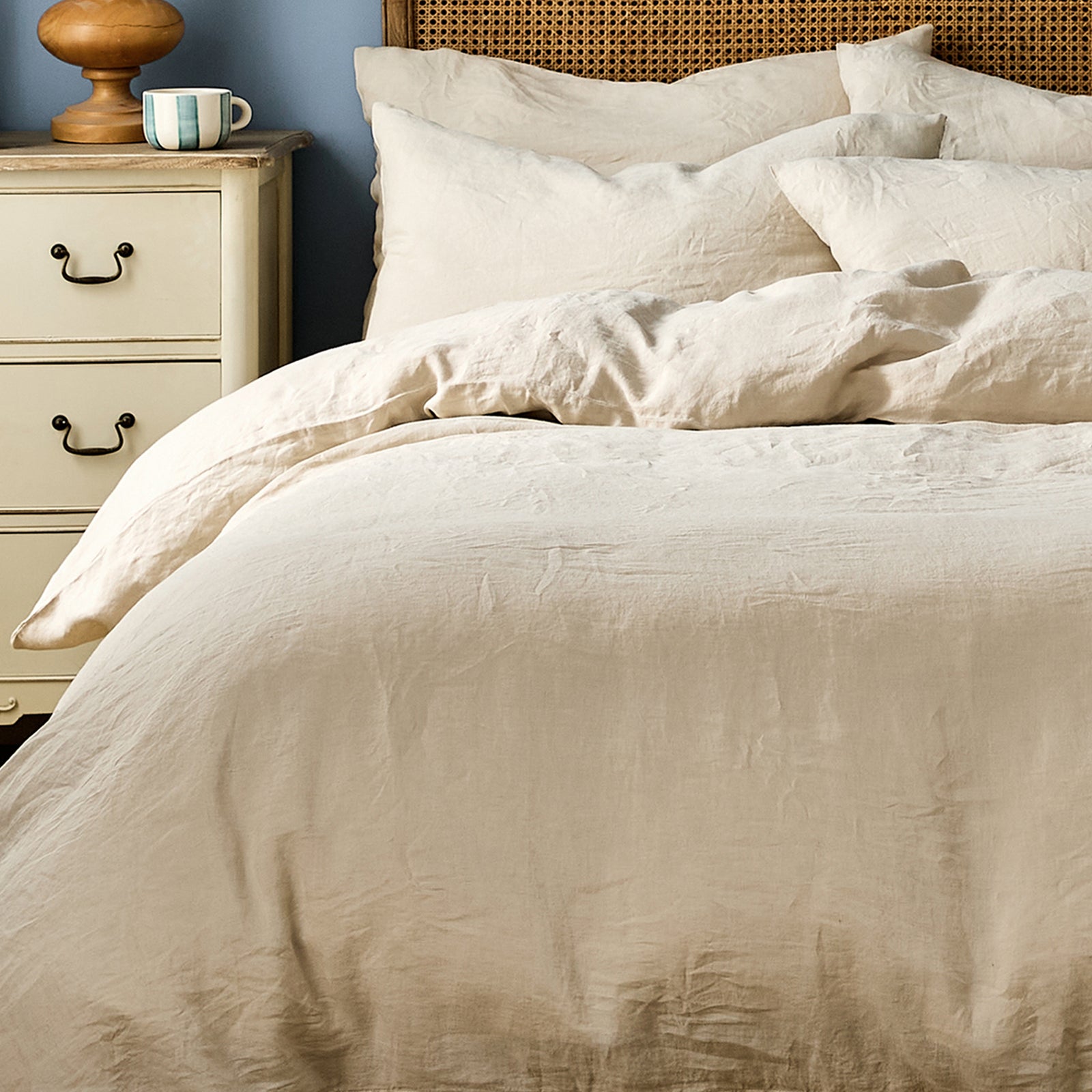 Drift off in sublime comfort with this versatile almond linen duvet cover. The perfect warm neutral—made from luxury natural linen.
