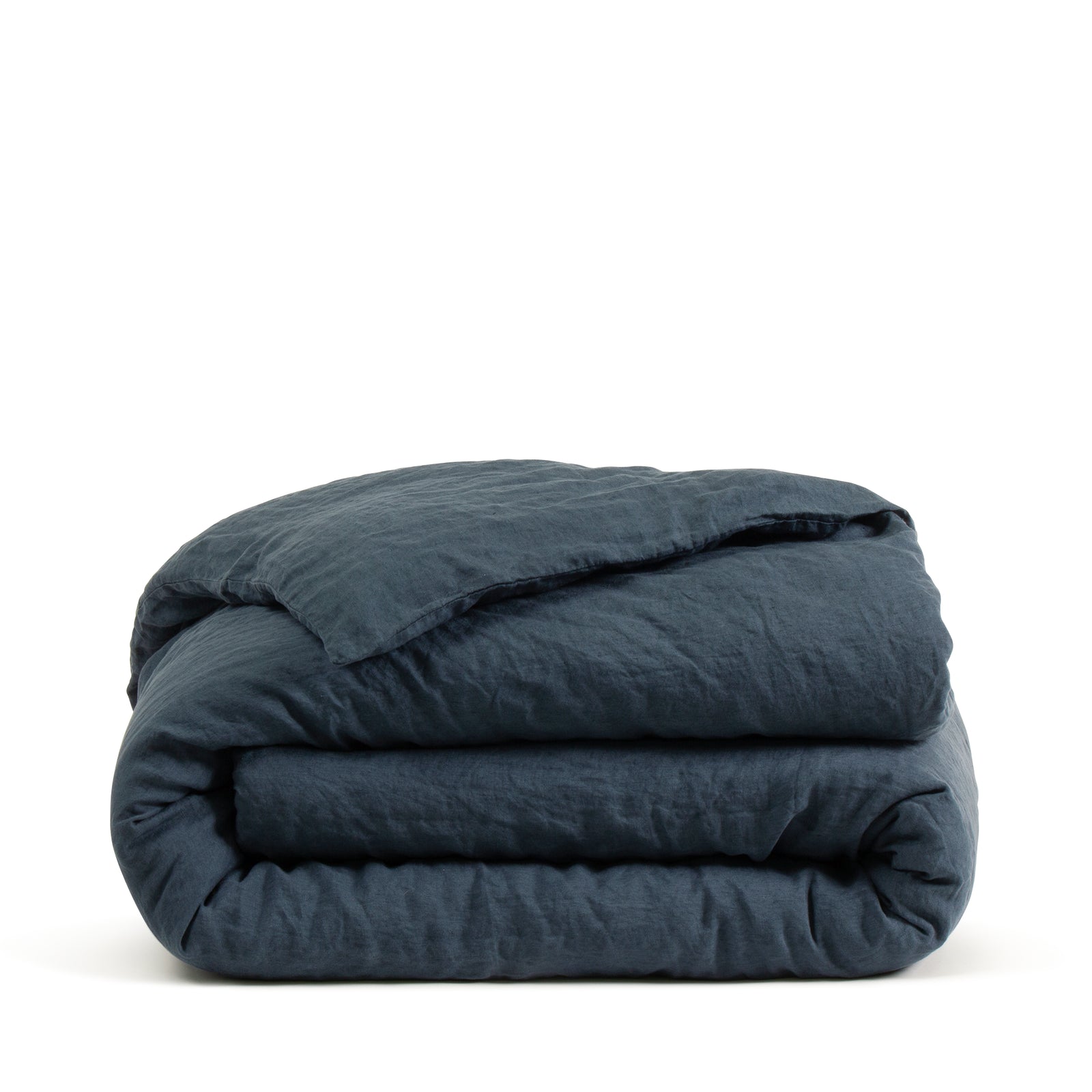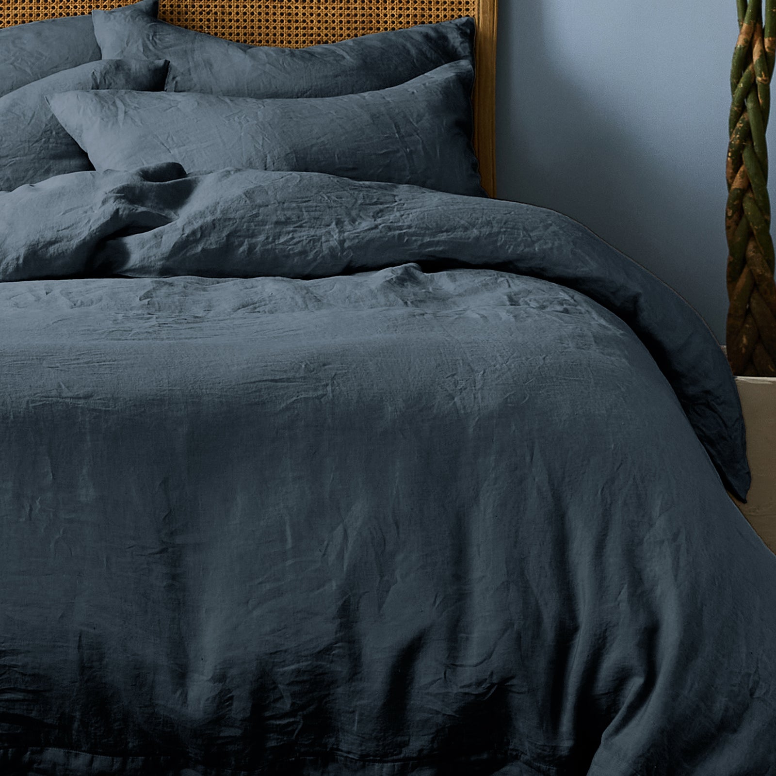 Tuck into your deepest slumbers with this cossetting deep blue linen duvet cover inspired by nature—slow-made from luxury natural linen.