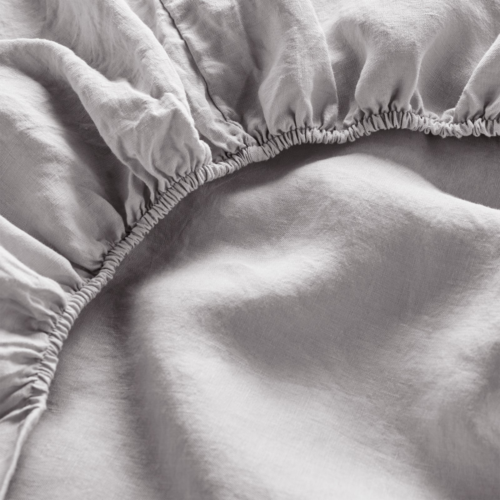 The foundation of a restful night’s sleep. Nestle into this fitted sheet, a warm grey with a subtle sleep-friendly lavender undertone—slow-made from luxury natural linen.