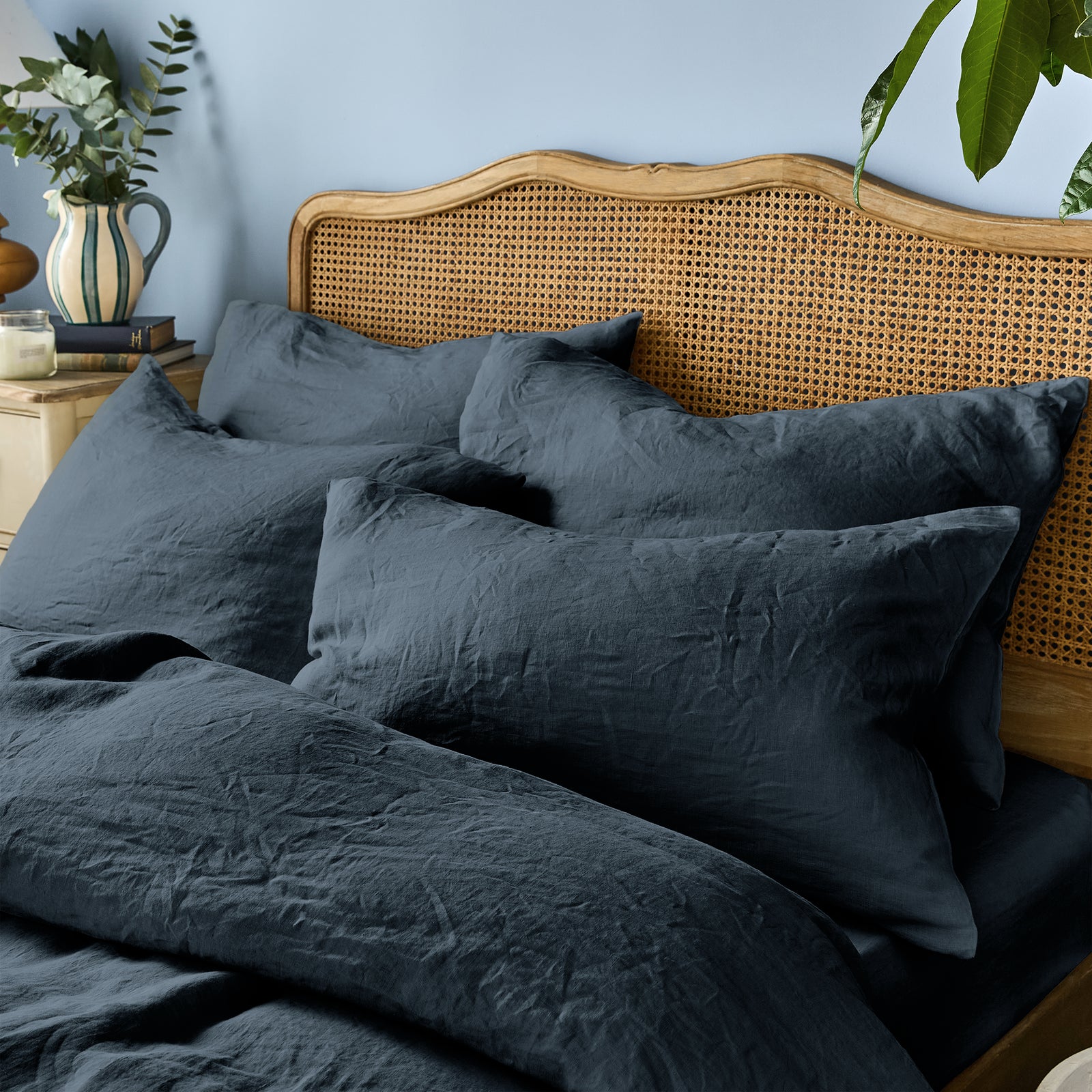 The foundation of a deep night’s sleep. Settle into this cossetting deep blue linen fitted sheet inspired by nature—slow-made from luxury natural linen.