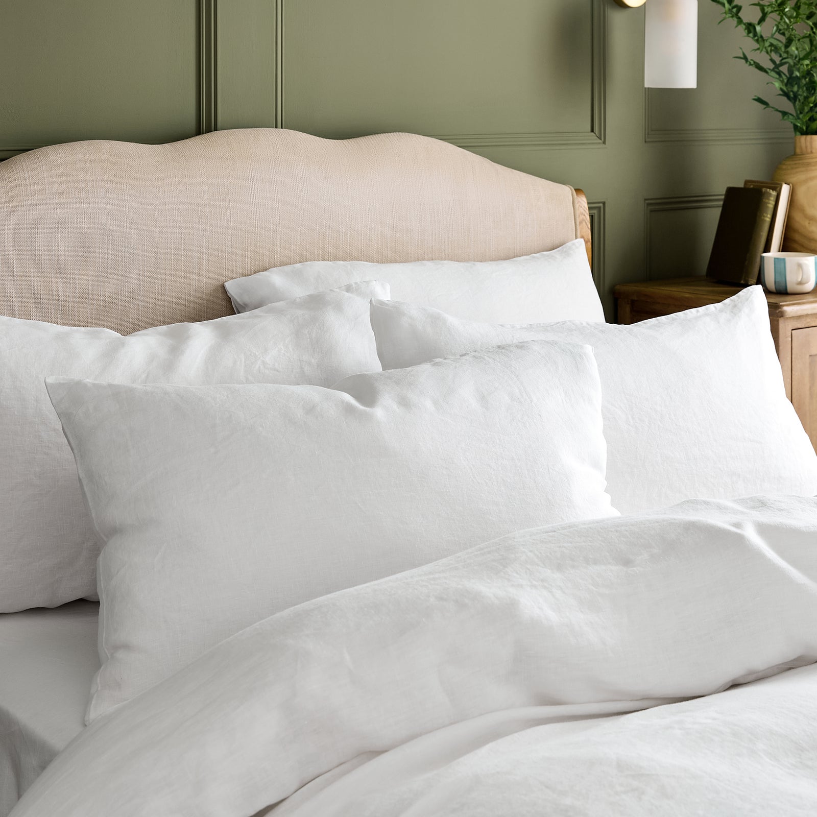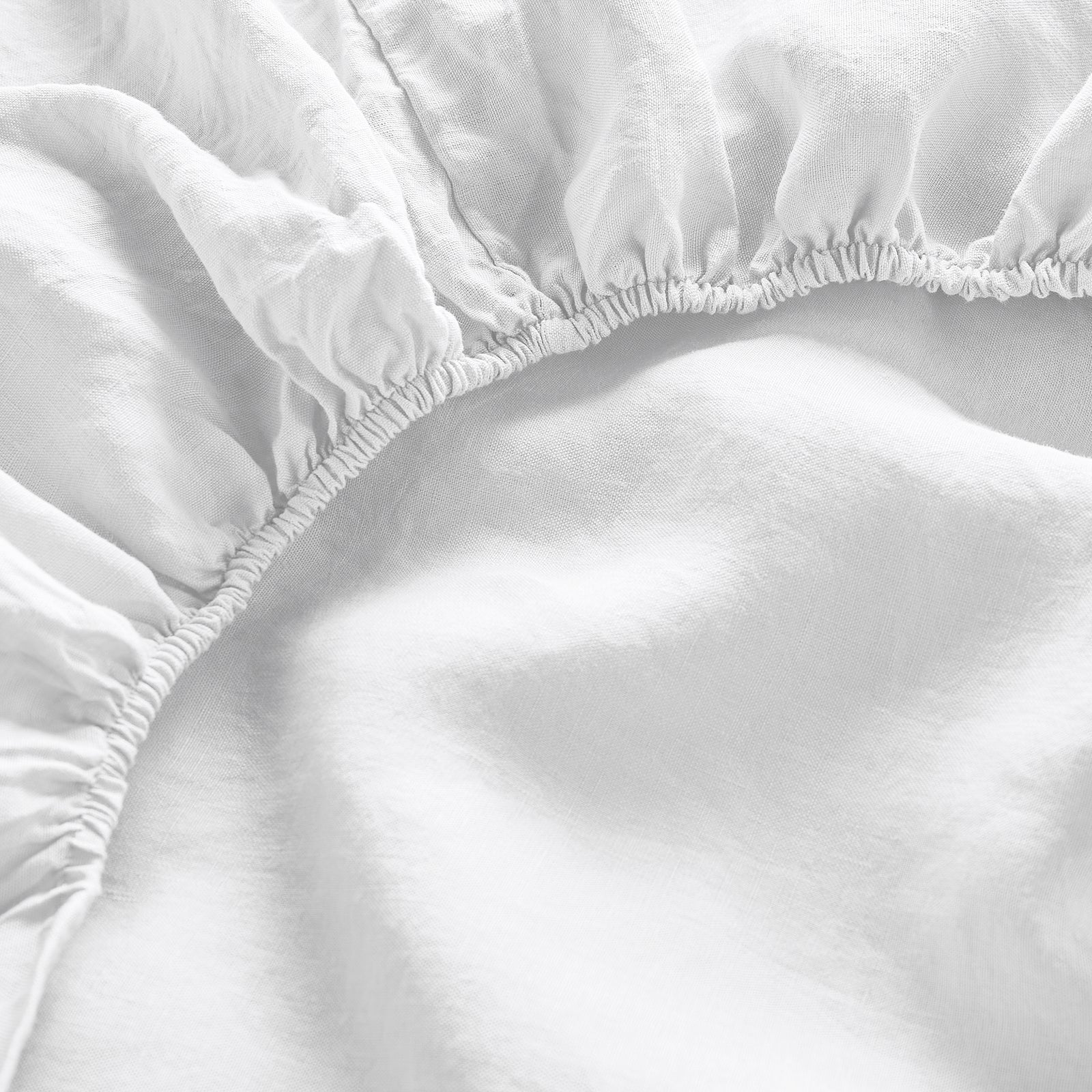 Drift off into a cloud of comfort each night, with this timeless pure white fitted sheet—slow-made from luxury natural linen.