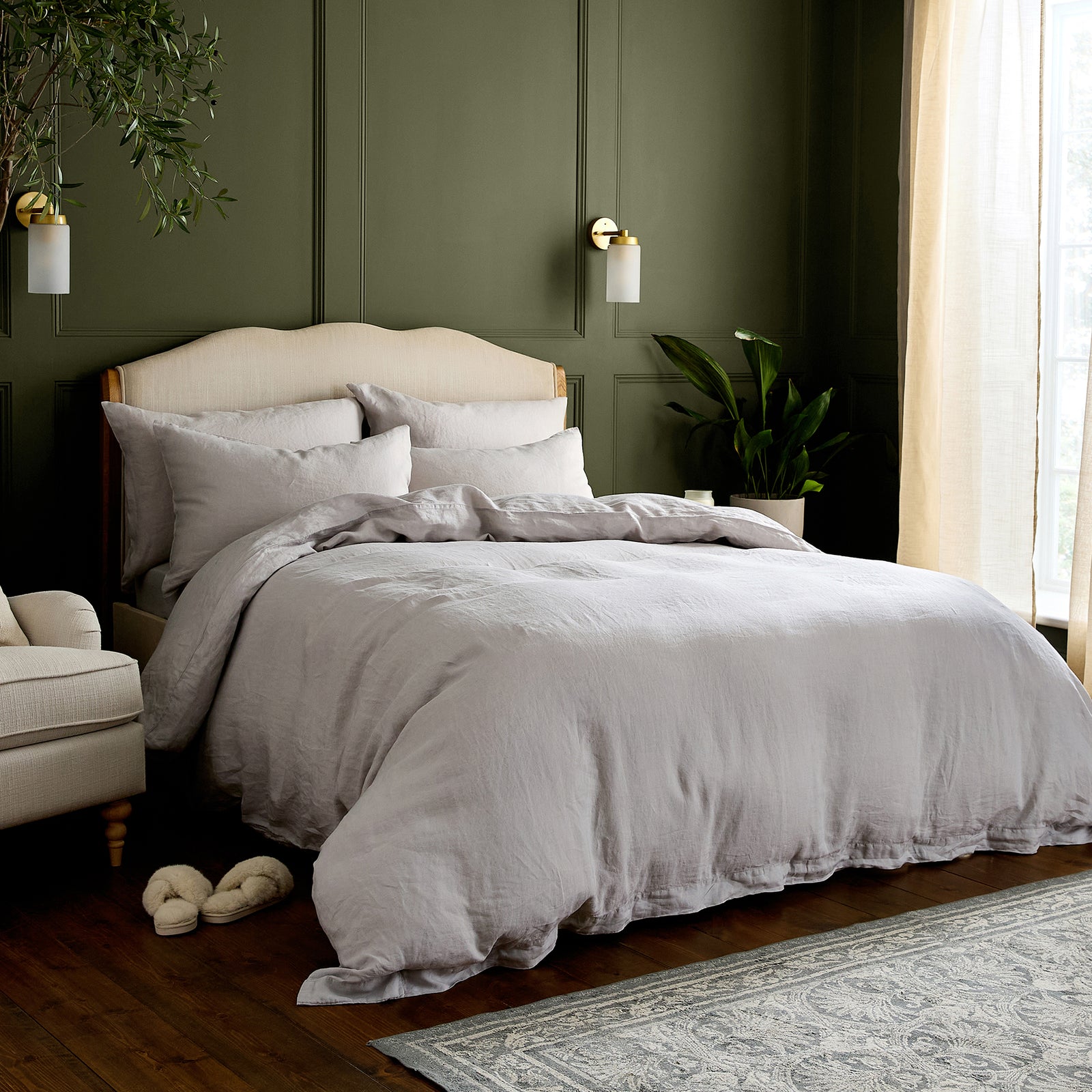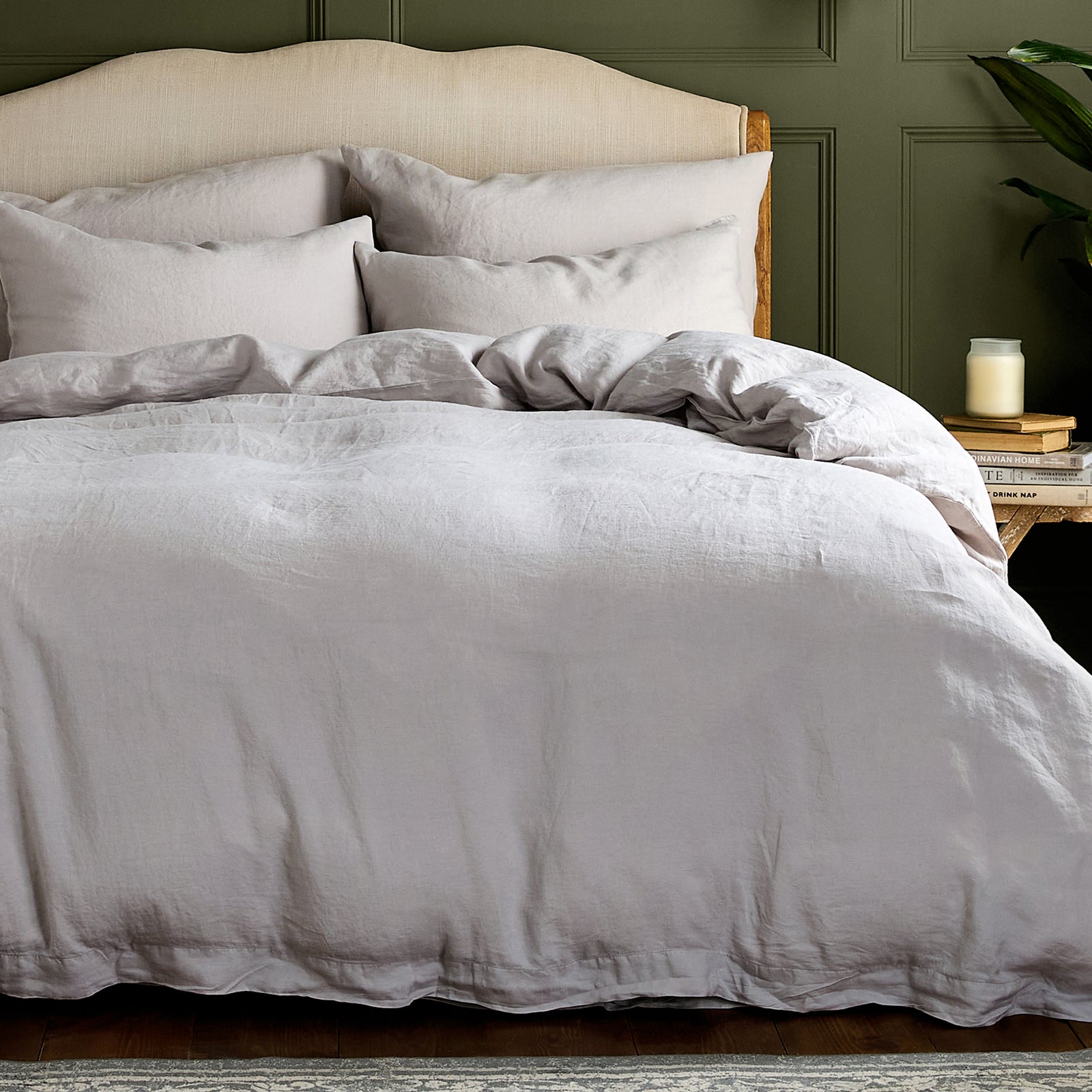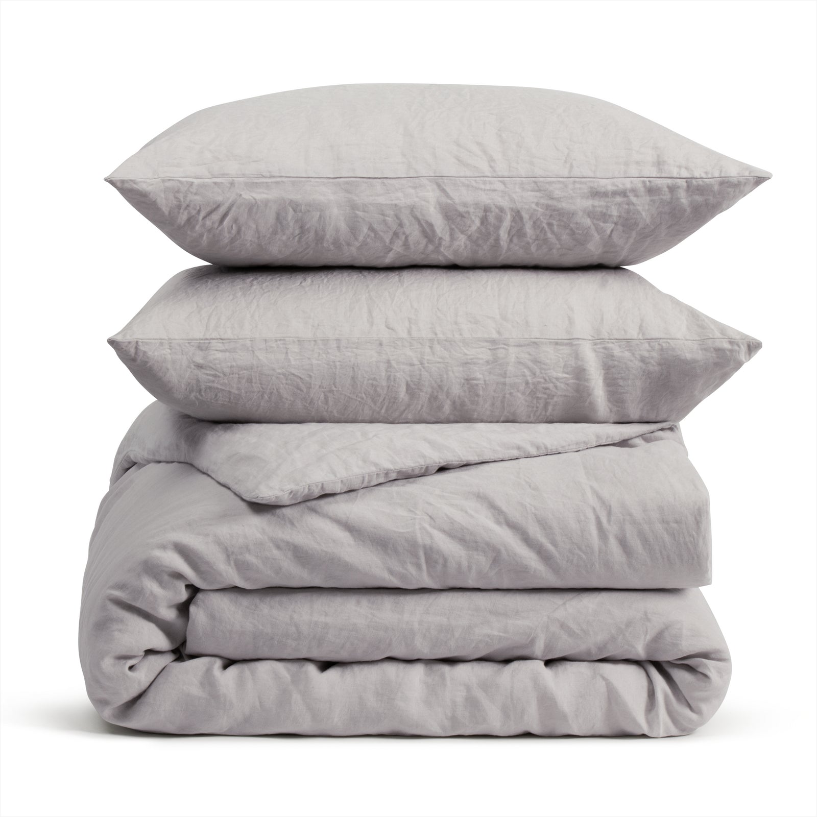 Look forward to your deepest slumbers with this bedding set, a warm grey with a subtle, sleep-friendly, lavender undertone—slow-made from luxury natural linen.