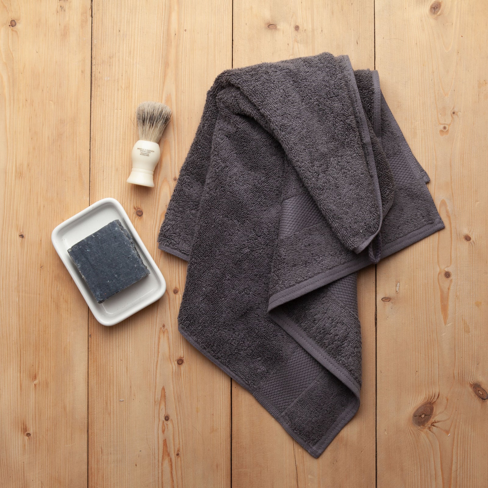 Ease yourself into the softest essential towels in dark grey—a treat for your skin, made from luxury organic cotton.