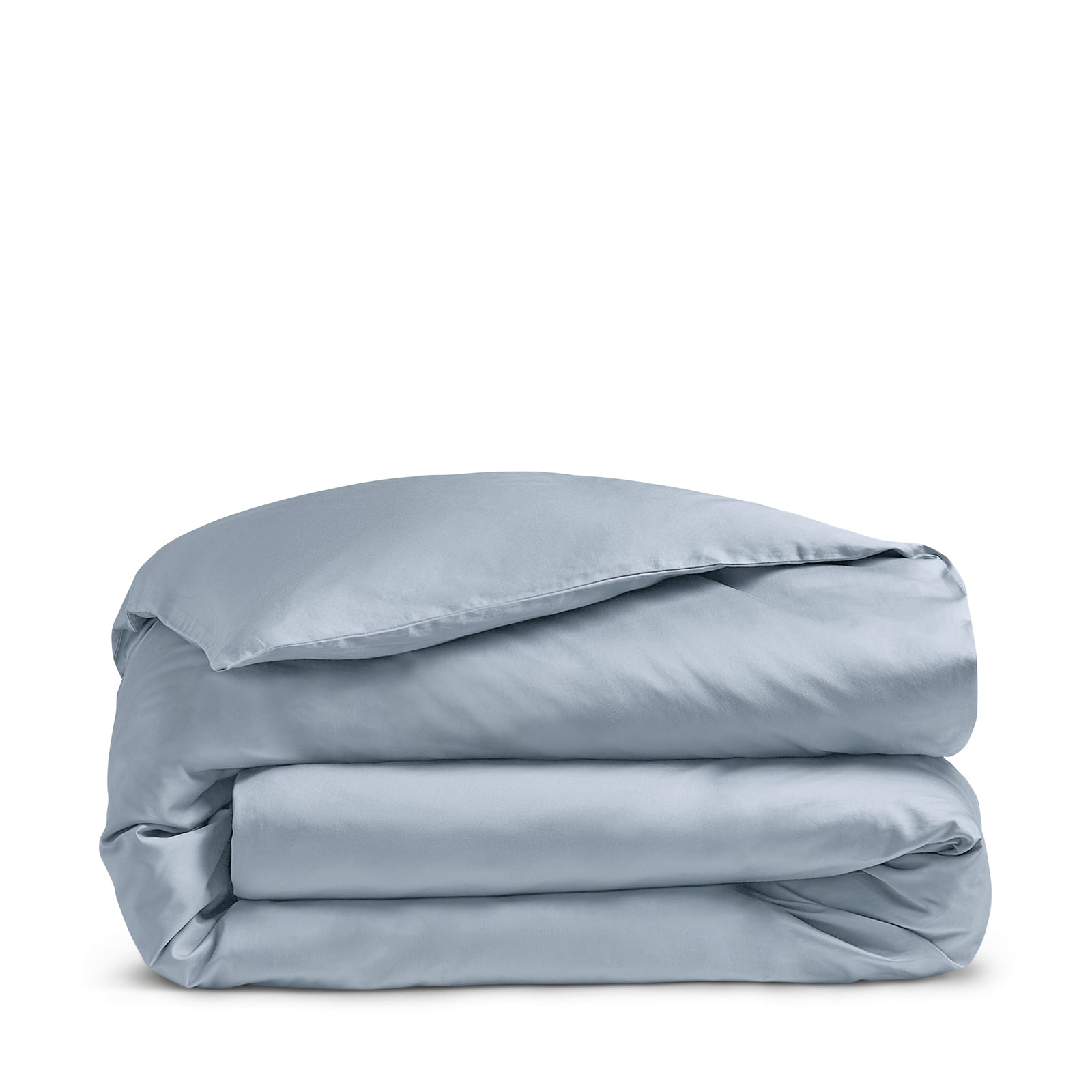 Tuck into this mood-soothing dusky blue duvet cover with a soft grey undertone—slow-made from luxury organic cotton.
