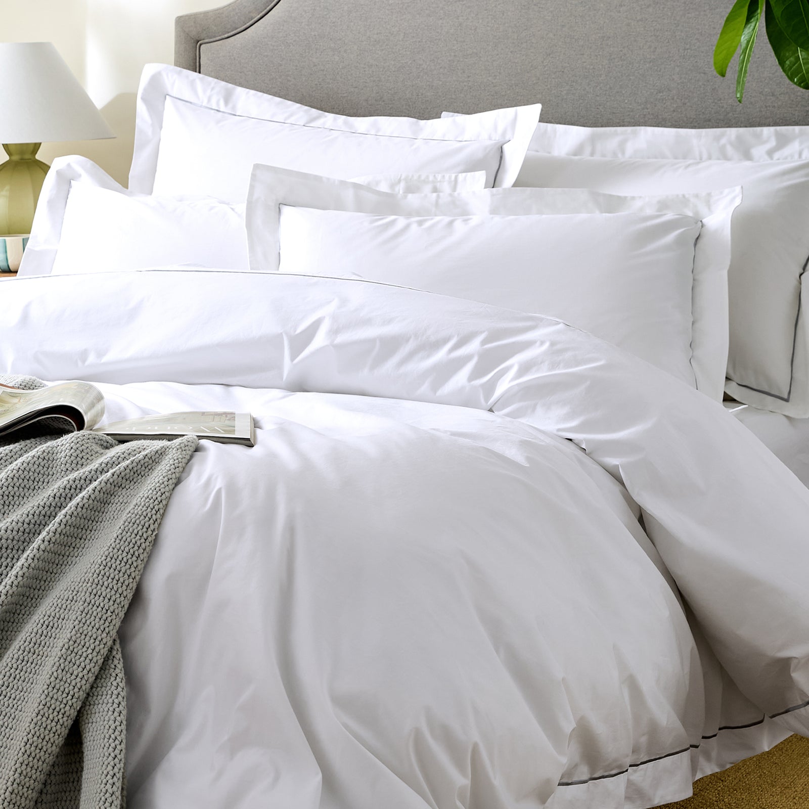 Tuck into pure luxury, with this exquisite embroidered-grey duvet cover—slow-made from the finest quality organic cotton.