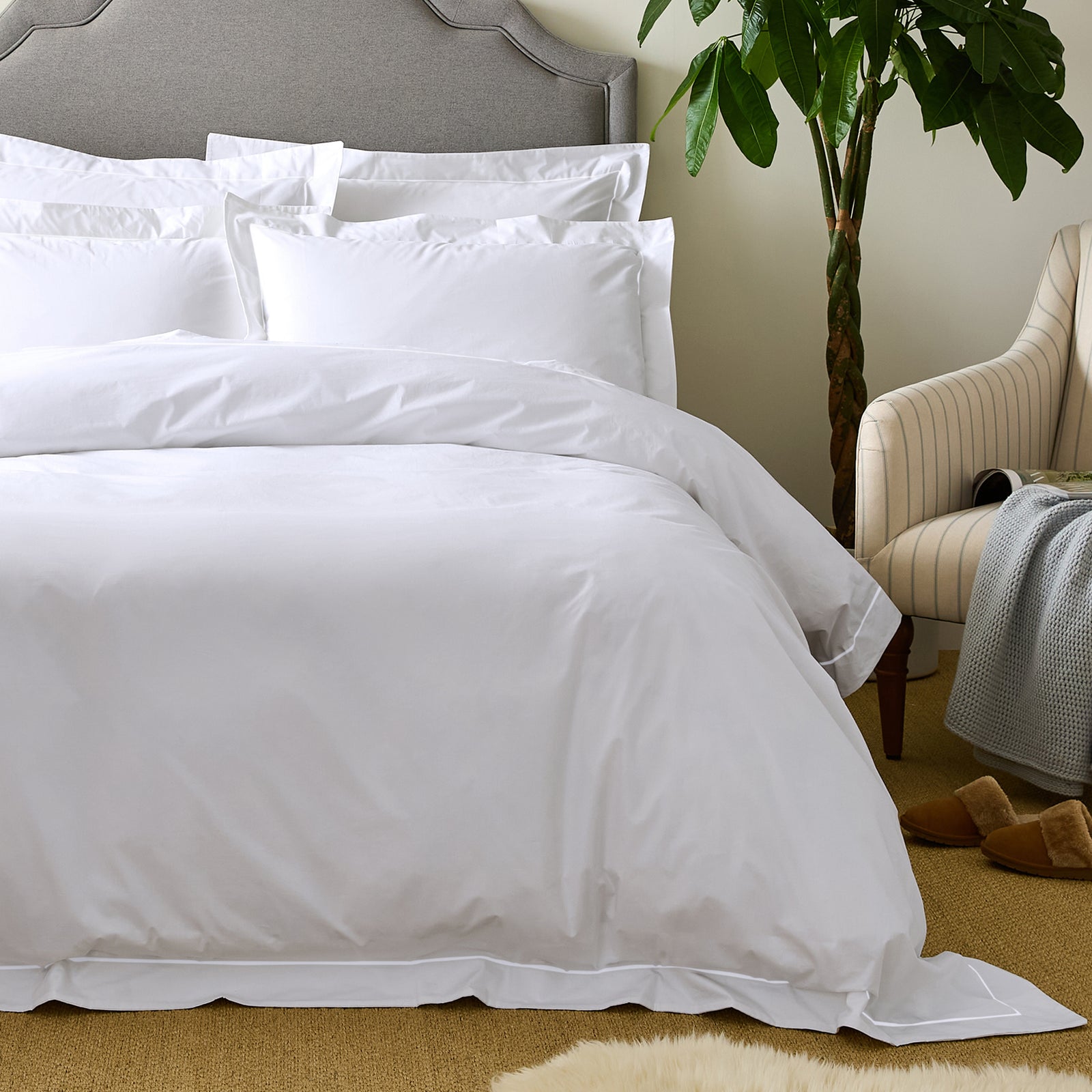 Wind down with this luxurious edged, embroidered pure white bedding set—made from the finest quality organic cotton.