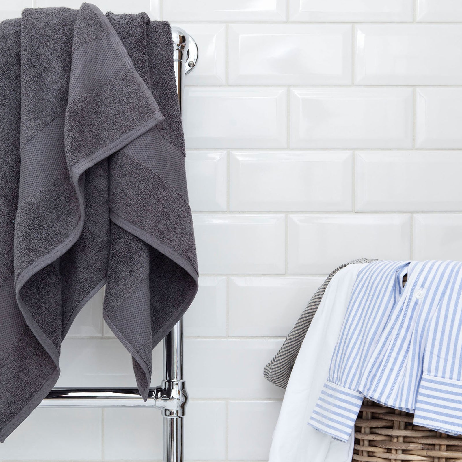 Extra-large and extra-cosy, envelop yourself in our most generously sized jumbo bath sheets in dark grey—made from luxury organic cotton.