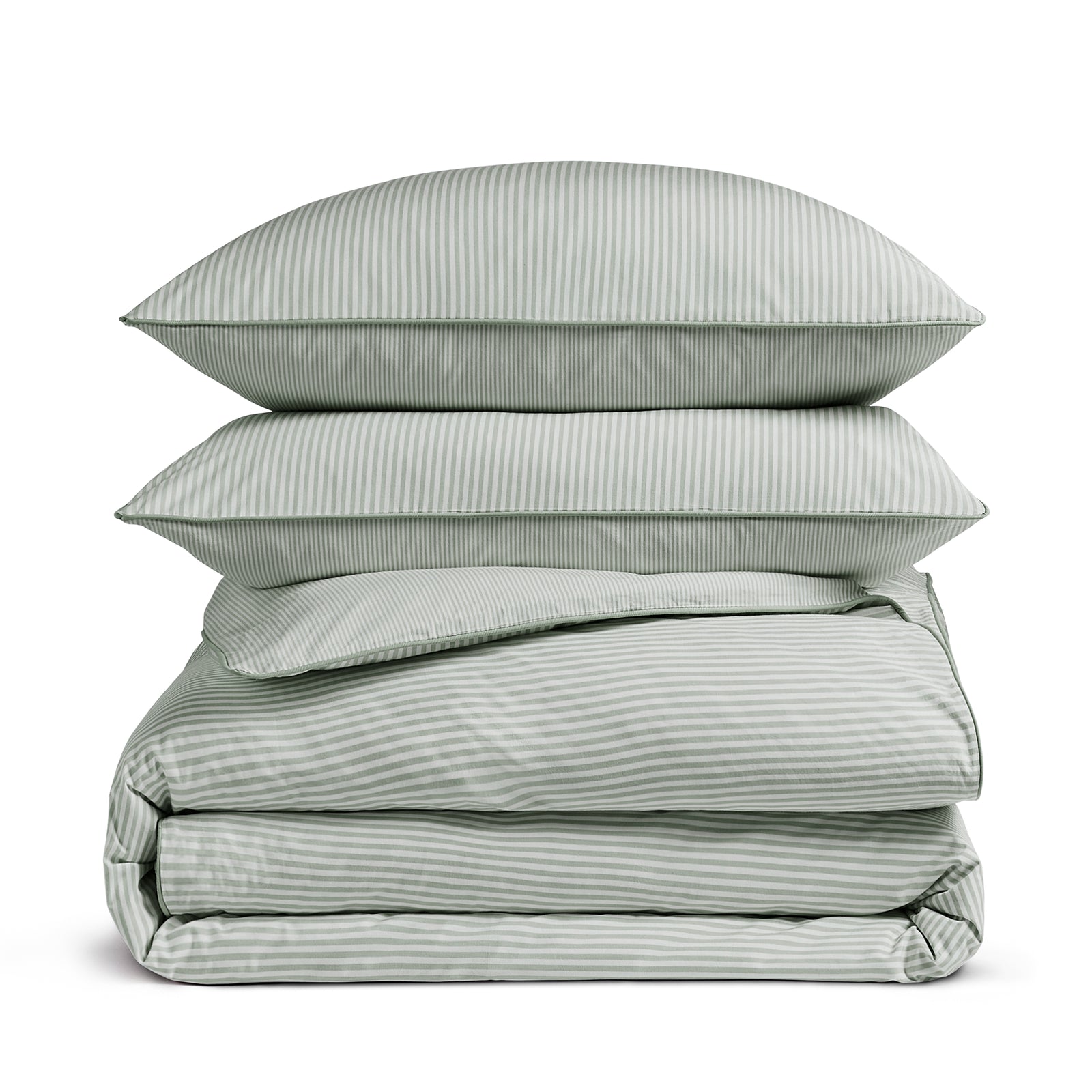Wind-down with this striped sage green bedding set, equal parts fresh & warm, this balanced shade has quiet character—slow-made from luxury organic cotton.